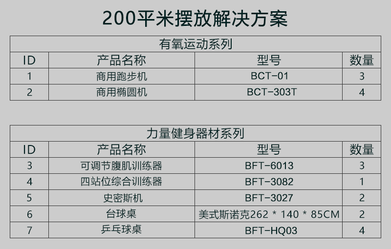 200平米健身房配置方案(企事业单位活动中心)