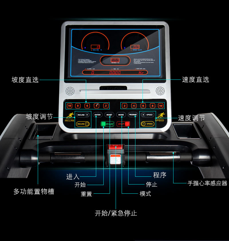 坡度直选功能、软停止及总里程记录功能、心率控制速度功能 |